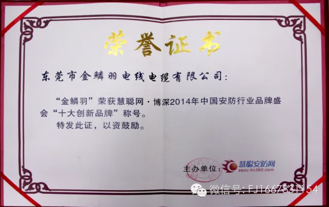在接下來的(de)(de)(de)2014年中(zhong)國(guo)(guo)安防(fang)行(xing)業(ye)(ye)品(pin)牌(pai)盛會榜單揭曉中(zhong),評審(shen)專家(jia)進(jin)行(xing)獎項詮釋,參會的(de)(de)(de)買家(jia)團(tuan)和企業(ye)(ye)代表,滿含期待、在萬眾矚目的(de)(de)(de)聚光燈下,主持(chi)人隆重地宣布(bu)作為(wei)安防(fang)弱電線纜品(pin)牌(pai)專業(ye)(ye)制造商金(jin)(jin)鱗(lin)(lin)羽(yu)(yu)榮獲“2014年中(zhong)國(guo)(guo)安防(fang)行(xing)業(ye)(ye)十大創新品(pin)牌(pai)”頓時場內掌聲(sheng)沸(fei)騰響(xiang)起,懷抱著眾人對金(jin)(jin)鱗(lin)(lin)羽(yu)(yu)品(pin)牌(pai)的(de)(de)(de)肯(ken)定和支持(chi),金(jin)(jin)鱗(lin)(lin)羽(yu)(yu)總經理凡(fan)軍(jun)先生上臺(tai)領(ling)獎,獲得(de)此榮譽,代表著評審(shen)專家(jia)團(tuan)和買家(jia)團(tuan)對金(jin)(jin)鱗(lin)(lin)羽(yu)(yu)品(pin)牌(pai)進(jin)一步的(de)(de)(de)肯(ken)定,對于未來金(jin)(jin)鱗(lin)(lin)羽(yu)(yu)品(pin)牌(pai)走向全國(guo)(guo)全世界(jie)邁向一個更高的(de)(de)(de)臺(tai)階(jie),非常(chang)值(zhi)得(de)慶賀,也是金(jin)(jin)鱗(lin)(lin)羽(yu)(yu)品(pin)牌(pai)發展中(zhong)一個歷史值(zhi)得(de)紀念(nian)的(de)(de)(de)日子。