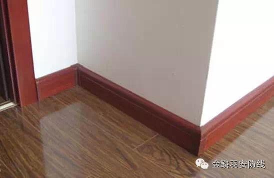 留意:無論是高分子、密度板、木材質料的踢腳線,都有熱脹冷縮的特性,因而靠墻角的踢腳線也應像地板相同,留出1cm擺布的伸縮縫。