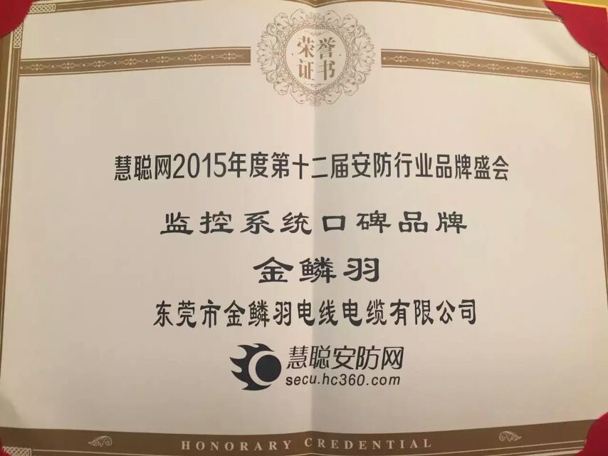 恭賀金鱗羽榮獲2015年度安防監控系統十大口碑品牌