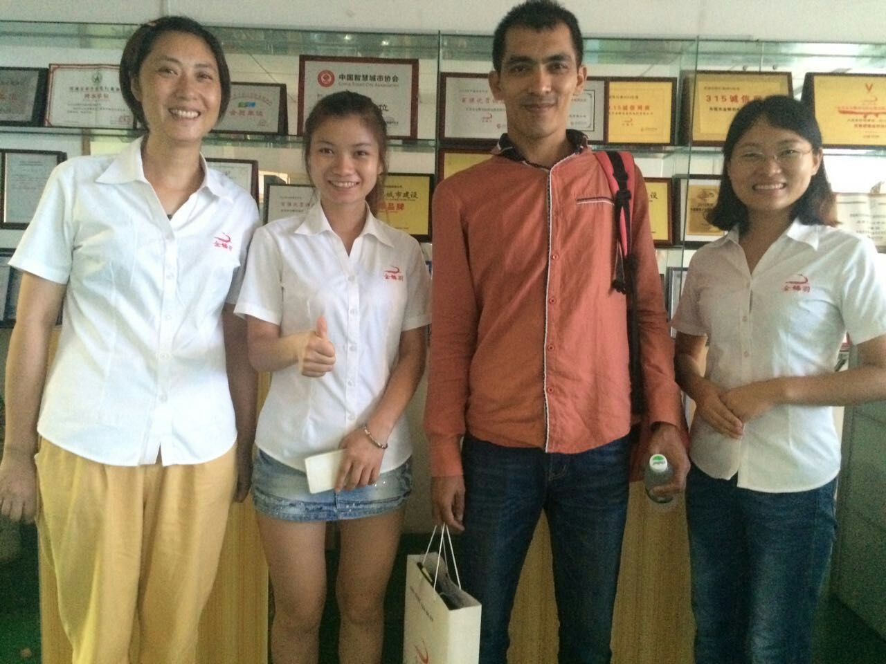 考察(cha)結束后,客(ke)戶與公(gong)(gong)司副(fu)總、業務經(jing)理(li)和外貿(mao)部經(jing)理(li)在公(gong)(gong)司前臺合影留念(nian)。