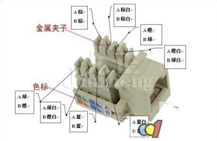 正確的連接起來,使得網絡能通,現在家庭中大多使用雙絞線(即一般的網線),一般分為T568A和T568B兩種線序,信息模塊端接入方式分T568A模塊和T568B模塊兩種方式,兩種端接方式所對應的接線順序如下: