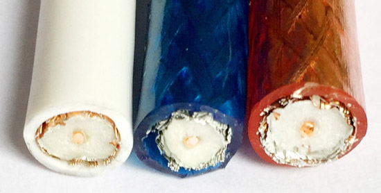 絕緣:現在的CATV線纜大都采用PE物理發泡進行生產從面使用頻率達到相應要求,PE物理發泡正規的線纜氣孔細微,比較柔軟,表面純白且光滑。非標的線纜絕緣一般采用化學發泡,氣孔粗糙且顏色不純,線纜的電氣性能一般不合格。