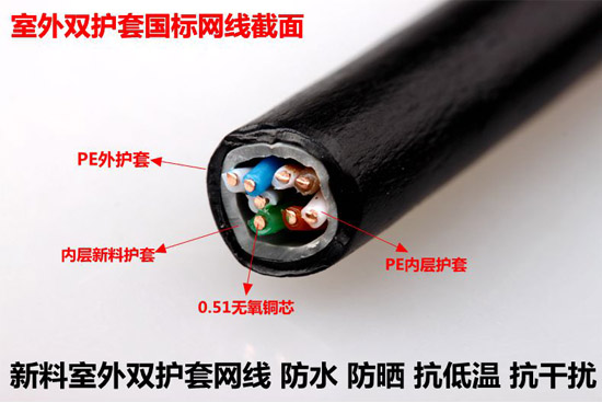 雙護(hu)套阻(zu)水(shui) 防(fang)曬 防(fang)鼠咬,產品為(wei)8根全無氧銅,電阻(zu)超(chao)低。合(he)適監控室外長距離傳(chuan)輸(shu)(shu)。