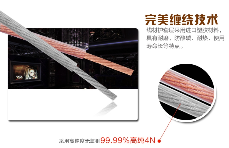 產品(pin)用(yong)途(tu):用(yong)于傳(chuan)輸低頻(pin),音頻(pin)大(da)信(xin)號,俗稱發燒(shao)線。主要用(yong)于功放與多(duo)臺音箱之間的(de)(de)連(lian)接,也可用(yong)于音箱內安(an)裝。此款是國(guo)內公(gong)認的(de)(de)品(pin)質(zhi)上(shang)乘產品(pin),具有單線直徑細(xi),支(zhi)數多(duo),銅質(zhi)純的(de)(de)特點(dian),使傳(chuan)輸音頻(pin)得以(yi)充分保真,外觀(guan)晶瑩透明(ming),美(mei)觀(guan)舒心。