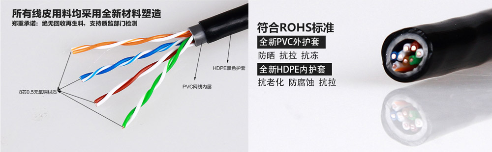 產品名稱: 室外0.5無氧銅超五類防水網線